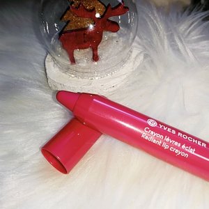 *le crayon lèvres éclat. J’ai reçu le rose. Il a une texture baume au beurre de karité. Son +, pas besoin de le railler grâce à sa mine retractable. Le crayon glisse sur les lèvres, il est très agréable à porter. Dommage que ce soit une ancienne collection. Son prix en magasin est de 9€90.