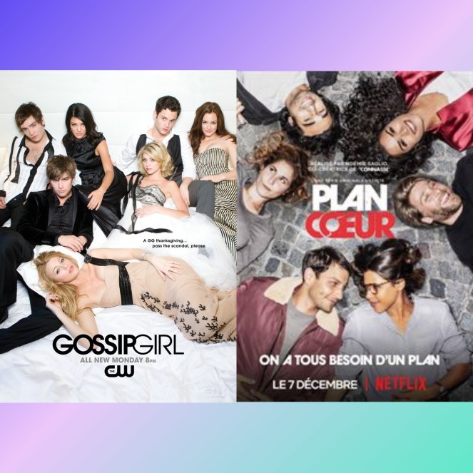 J’ai encore dévoré des séries ce mois ci. J’ai regardé plan cœur. Une série française sur Netflix.il n’y a que 8 épisodes de moins de 25min. Ça passe vite c’est plutôt pas mal. Ensuite j’ai regardé gossip girl. Je m’y suis replongée dedans. J’ai terminé les saisons 1,2,3 et la je suis en plein dans la saison 4. C’est une série qui date un peu mais qui franchement ne se démode pas! Je vous la conseille.