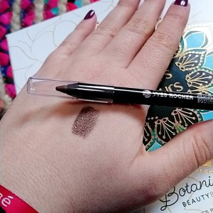 ° Pour commencer nous avons un joli crayon couleur vĂ©gĂ©tale brun Ă©corce. Je n’avais pas du tout de crayon de cette gamme il me semble et c’est vraiment dommage car il est gĂ©nial ! C’est un brun avec des paillettes dorĂ©es qui tient extrĂȘmement bien. J’ai eu du mal Ă effacer le swatch sur ma main mĂȘme en le frottant sous l’eau. Vous pourrez le retrouver Ă 11âŹ50 en magasin.