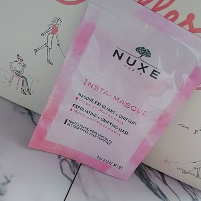 ° Ensuite nous avons eu un Ă©chantillon de l’insta-masque, exfoliant et unifiant. Il faut l’appliquer le soir pour avoir une jolie peau le lendemain matin ! Les 50ml sont Ă 18âŹ50.