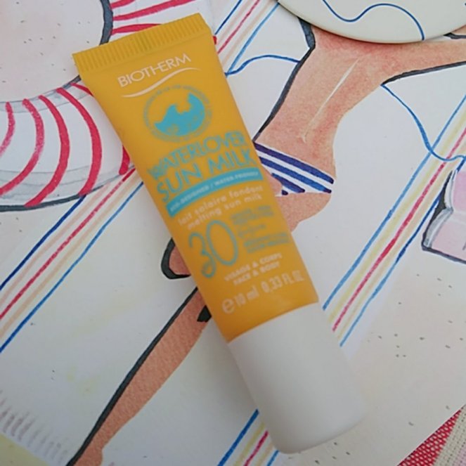 On termine avec une miniature du waterlover sun Milk de biotherme toujours. Un lait solaire fondant pour le visage et le corps. Vu la taille miniature du produit ici, 10ml, je ne le testerai que sur le visage bien entendu.