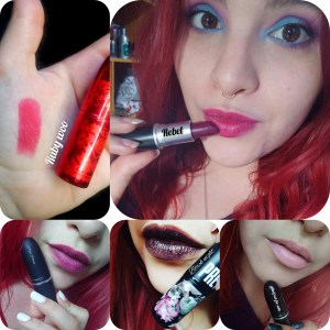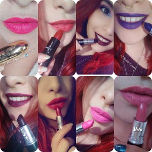 Pour les 5 finis suivants il n’y en aura qu’un seul de chaque. Pour le retro matte c’est le fameux Ruby Woo. Le rouge parfait selon moi ! Un des premiers que j’ai eu, dans la catégorie Satin c’est le Rebel. Pour le Lustre c’est le Aloof not for Sale . Et un très beau que j’aime beaucoup c’est le Black Night chez les Cremesheen . Un fini différent que je trouve très agréable à porter c’est le fini Powder Kiss . Pour celui là j’ai le P for Potent. J’espère bientôt en avoir d’autre 😉