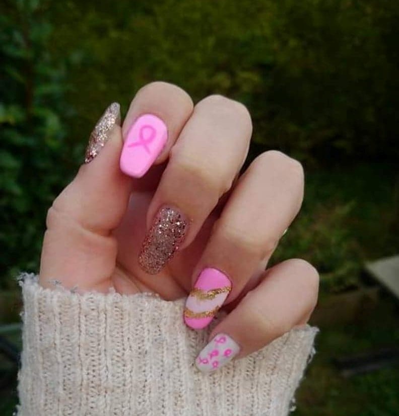 J’ai malheureusement une personne de ma famille qui a été touchée par cette maladie et qui s’est battue bec et ongles contre elle. Malgré tous ses efforts , la maladie a été plus forte qu’elle 😦 . Depuis de ce moment j’ai décidé de soutenir à ma manière, à mon niveau , les personnes atteintes de cette maladie mais également leur famille. Chaque année je fais un maquillage ou un nail art pour octobre rose. Je vais donc vous publier ceux de cette année mais également des années précédentes.