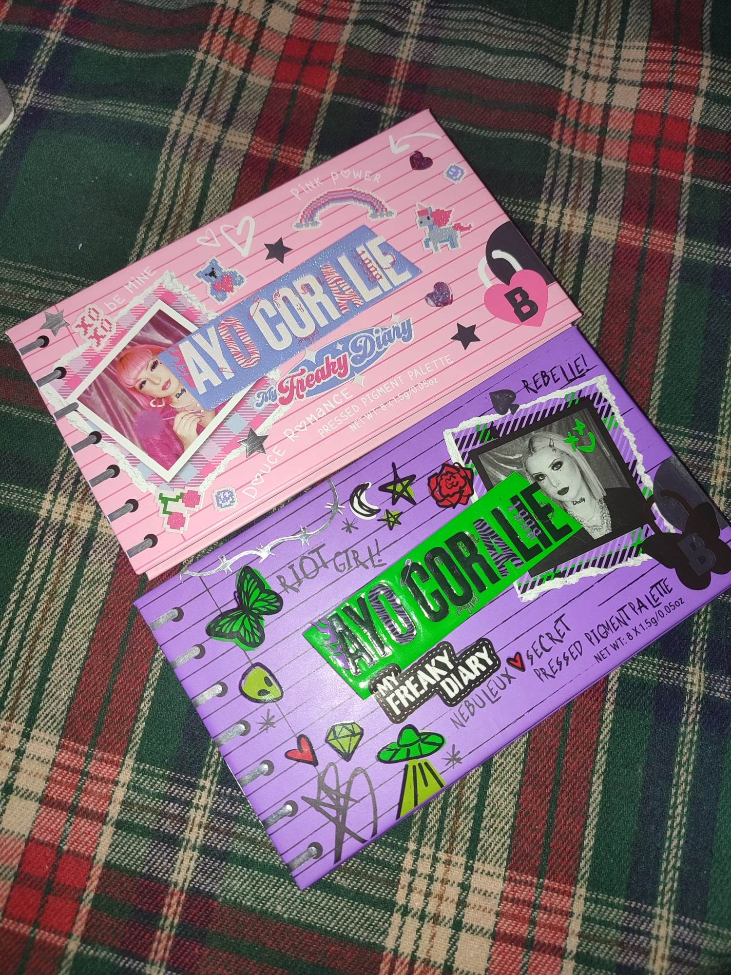 On passe maintenant à une collaboration de Beauty Bay. Celle avec Ayo Coralie. Sa première palette ne m’avait pas tellement intéressée , celle ci un peu plus. Et une bonne réduction a finit de me convaincre 🙂 C’est donc l’ensemble des deux palettes My Freaky Diary. Il y a la Douce Romance et la Nebuleux Secret. Des palettes de 8 fards, une dans les teintes bleues , roses et une autres plus dark dans les violets et verts. J’ai une grande préférence pour cette deuxième palette que j’ai déjà testé. Cela reste de la qualité Beauty Bay et je n’ai jamais eu de soucis avec leurs palettes.